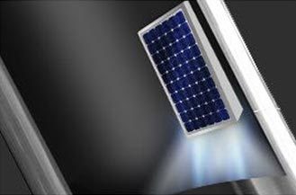 - Sits inside your skylight and charges throughout the day.